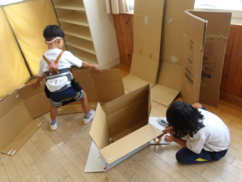 年長さんは、こども館の再現ごっこを始めました。laugh