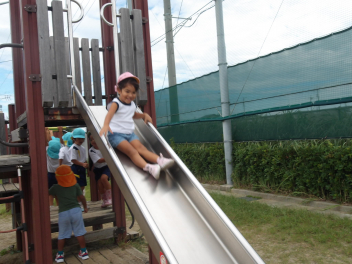 薄日が差して、風も心地よく吹いていたので 滑り台、最高