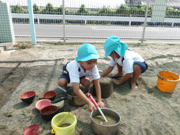 幼稚園では、久しぶりに土遊びが始まりましたwink