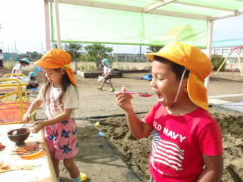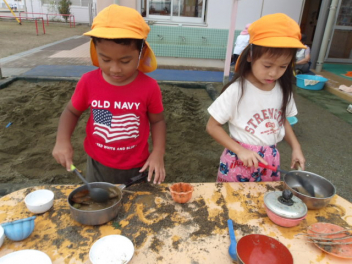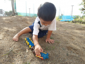 砂場で、型抜きが作れるようになって、何回も作ったり壊したりしていますwink