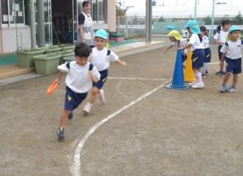 お友達からバトンをもらって、元気いっぱい走るよwink