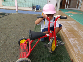 雨上がりの園庭で泥だらけになった三輪車をピカピカに拭いてくれました