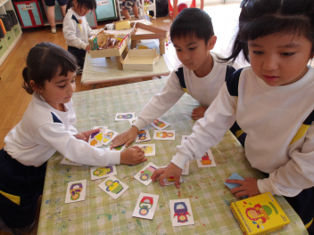 登園をして支度が早いとカードゲームでたくさん遊べますwink