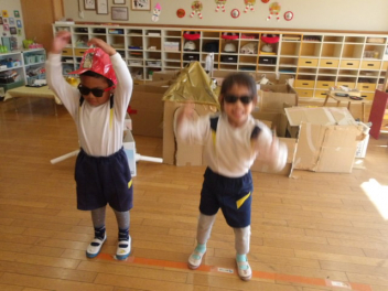 先生と一緒に大きい組のオペレッタの真似をして遊んだよ