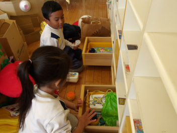 昨日の年長さんのお店屋さんの刺激を受けて、開店準備を始めましたwink