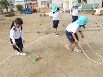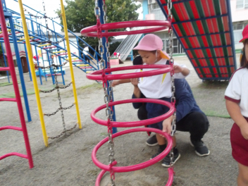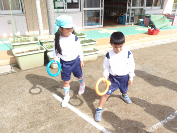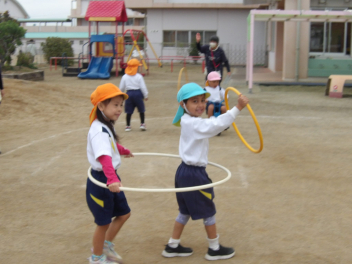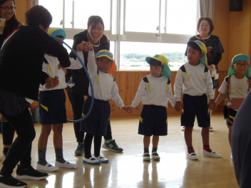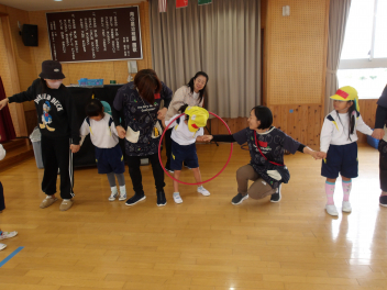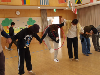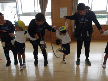 つないだ手を離さないように、みんなでフープを通していきますangel