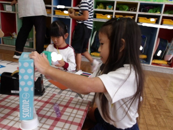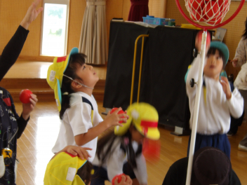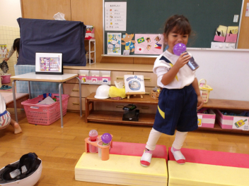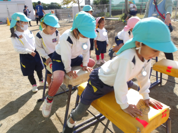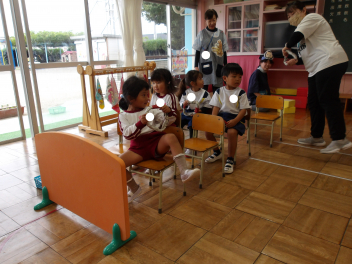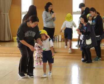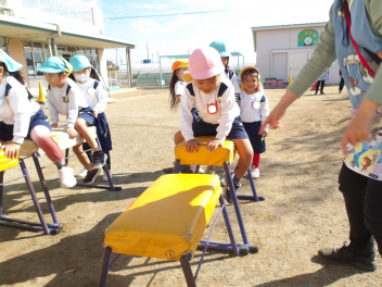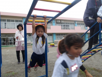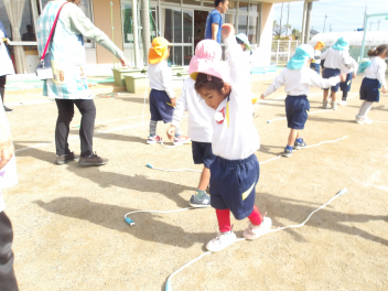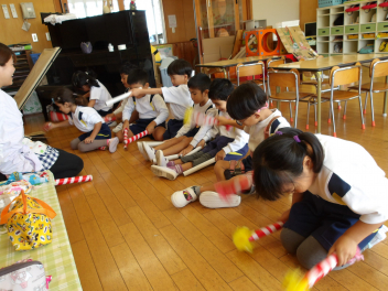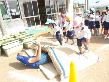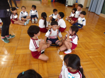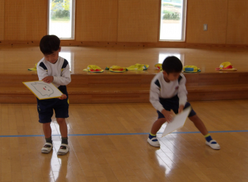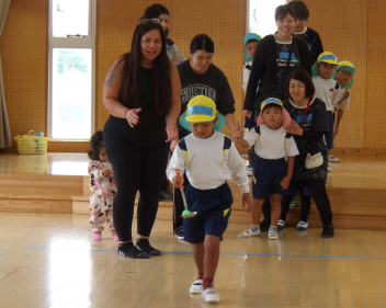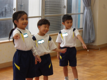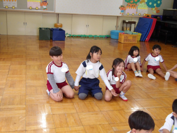 まずは、お父さん、お母さん、園長先生がやって見せてくれましたsmiley