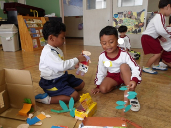 昨日、白脇幼稚園のお友達と一緒に作ったレッサーパンダで遊びましたwink
