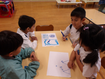 • 今日は、江南中学校の3年1組のみなさんが家庭科の保育実習で幼稚園に来てくれましたwink