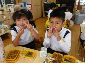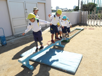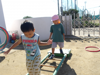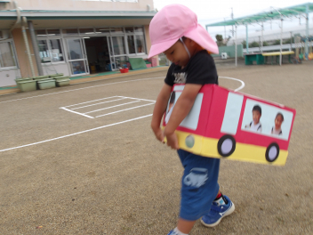 • 今日はバスに乗って白脇幼稚園へ遊びに行ってきました