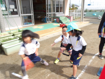 中学生を待ち構えて、年長はすぐにしっぽ取りを始めました