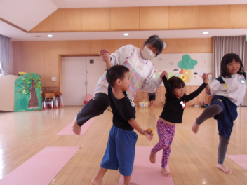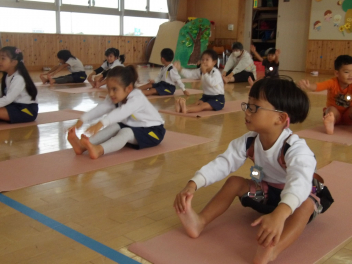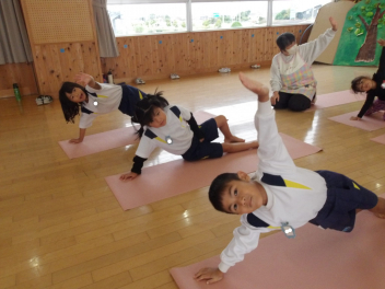 明日は、キッズヨガがありますどんなポーズをするのかなお楽しみに