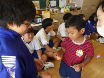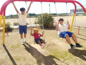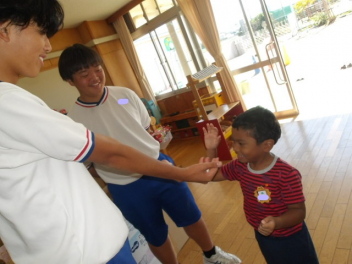 時間が短い交流でしたが、子供たちは、力一杯遊んでくれる中学生が大好きでしたcheeky