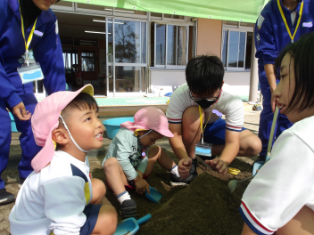 年少年中は、玉ねぎ植えをしました来年のカレーパーティーが楽しみだね