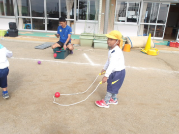 • 今日は、子供たちの大好きなカーズマン先生が来てくれました。元気いっぱい動いて楽しみました