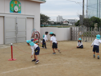 年長組は、最後に力いっぱい腕で跳ぼうwink