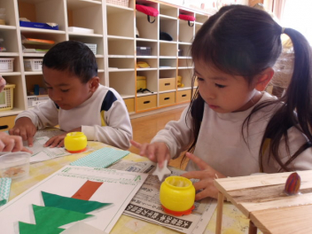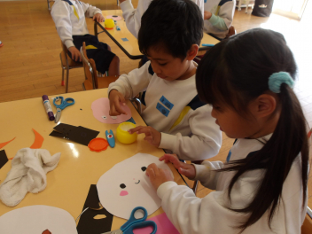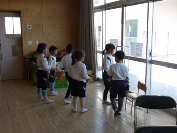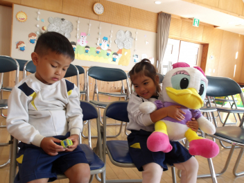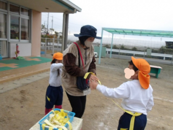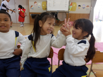 上手くできない年少さんに「一緒にやろう」と優しく声をかけてくれた年長さん