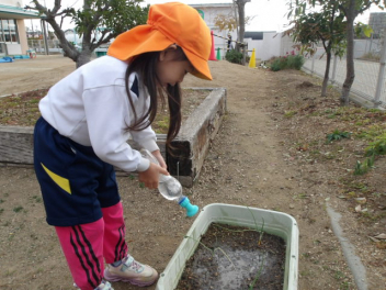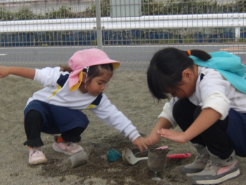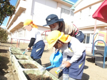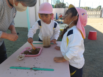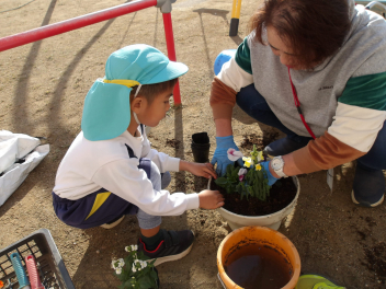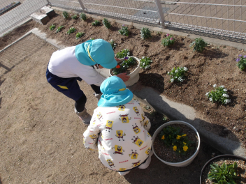 朝の支度が早い子たちが花植えを手伝ってくれましたwink
