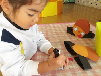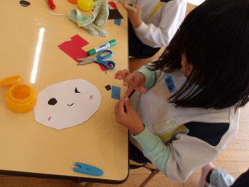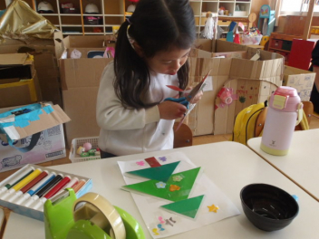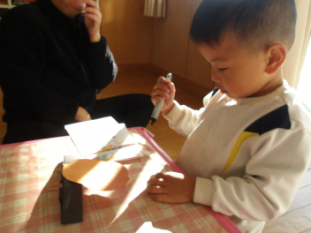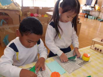 年中さんの製作は、指先を使った折り紙遊びから始まりました