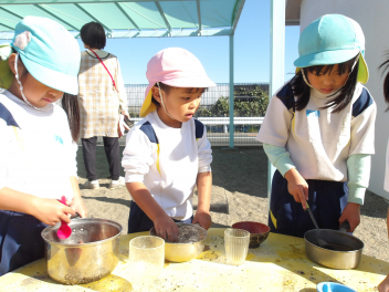 自園では、聞いて学ぶ、見て学ぶ、体験して学ぶものがたくさんあります。幼稚園には、いろいろな学びの場があることが嬉しいですねcheeky