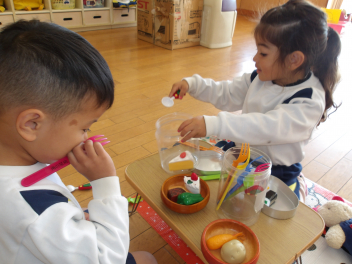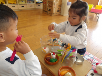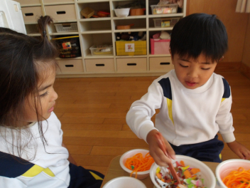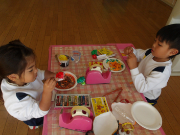 年長さんが作るお料理は、少しクオリティーが高くなりますcheeky一緒に遊ぶことで、年少の学びがありました