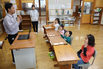 5年生の学習テーマは「What 〇〇 do you like?」です。 4年生で学んだ形・色・食べ物などの単語もしっかり定着していて、その記憶力の良さに感心しました!授業の最後には、2人組になってお互いの好きなものについて英語で聞き合い、笑顔で交流を深めることができました。