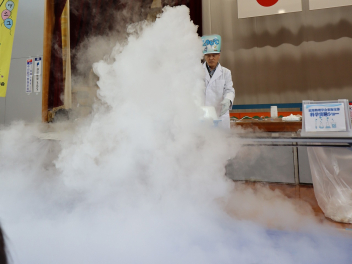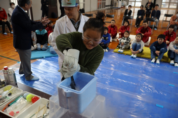 ボールや風船を、マイナス196度の液体窒素の中に入れるとどうなるのか、実際に体験しました。