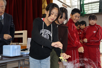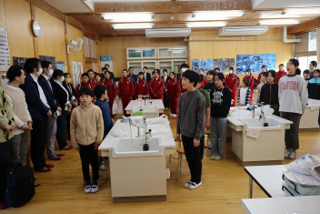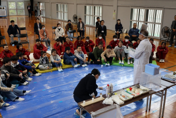 本日、応用物理学会東海支部の方達をお迎えして、リフレッシュ理科教室を小中合同で行いました。