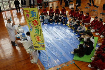 前半は、小中一緒に体育館で、サイエンスショーを見ました。