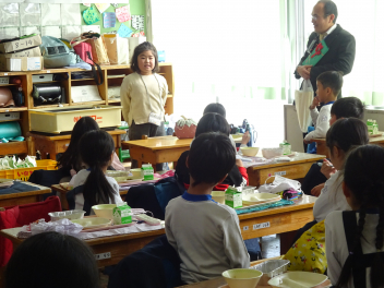今日は、学校給食週間最終日、能力アップ献立です。メニューは、麦ごはん、牛乳、さばの照り焼き、切り干し大根の甘酢あえ、呉汁です。脳の働きをよくするDHAやレシチンなどを多く含む食品を取り入れました。よくかんで食べることも、脳を活性化させます。浜松の特産「切り干し大根」を使ったあえものも子供たちに食べてほしい料理です。