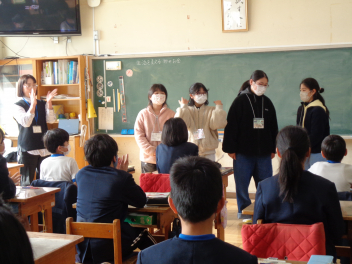 6年生は、外国語と体育の学習をしました。1年間のまとめを行いました。光明小の子供たちと、英語でどきどきしながら会話をしました。交流後に話をきいたところ「英語の発音がすごく上手でびっくりしたよ。」「ドッジボールの速いボールを女の子が捕っていてすごかった。」と、教えてくれました。とても刺激を受けたようです。