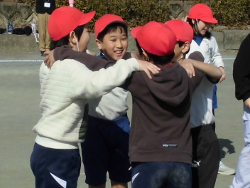 1年生は生活科で昔遊びをみんなで楽しみました。「ちょっと教えて」「こうやるんだよ」などの優しい声かけを通して、仲よく遊び交流することができました。