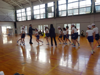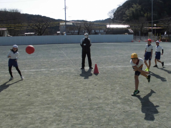 体育では、ドッジボールやケイドロをしました。同じ学年30人以上で、ドッジボールやケイドロを初めてできたようでした。ドッジボールでは、水窪小とルールが違うところもあることや、ゲームが長く続くことにびっくりしていました。