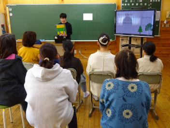 5、6年生は、かしのき(総合的な学習の時間)で、1年間調べてきたことの発表を行いました。水窪の歴史や道の歴史、林業についてなど、調べてきたことをスライドにまとめて発表しました。