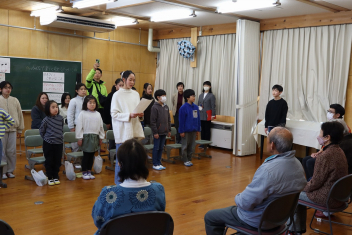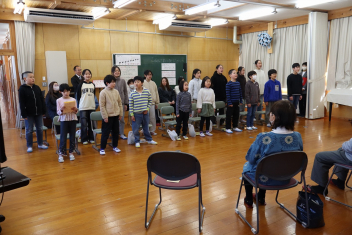 児童代表からお礼を伝えた後、「歌えバンバン」と「にじ」の歌をプレゼントしました。