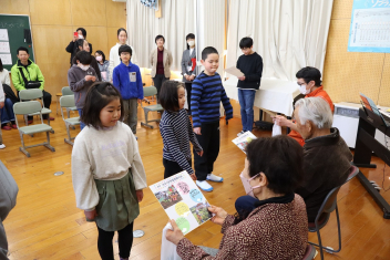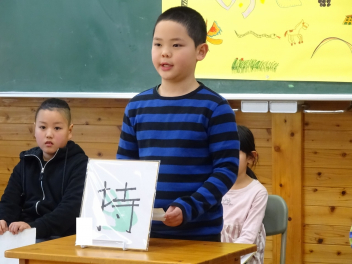 1年生は、生活科で作った1年間のすごろくの紹介をしました。1年間、たくさん楽しいことがあったことをお家の方や、2年生、4年生に伝えることができました。