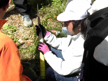 今年は猿などの動物に食べられてしまった跡も多く、見付けるのには少し苦労しましたが、みんなで目を凝らして一生懸命に探しました。その甲斐あって、全員がお気に入りの一本を見付けることができました。