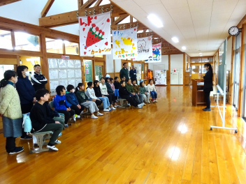 前半は、小中一緒に体育館で、サイエンスショーを見ました。