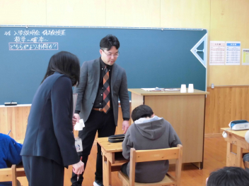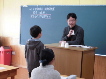 まずは、中学校の先生による授業の体験です。「数学」の授業を体験しました。