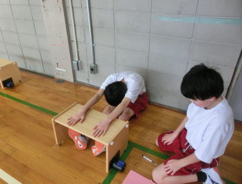 ペアで協力しながら新体力テストの測定をしていました。