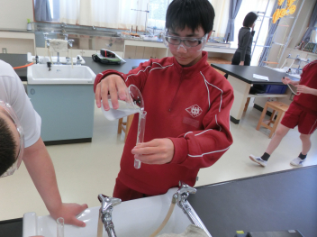 2年生は理科の授業で実験を行いました。