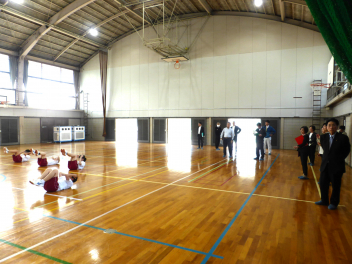 始めの準備体操の様子を見ていただきました。
