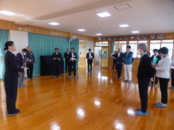 新任式では新しく着任された5名の先生方をお迎えし、校長先生からご紹介がありました。