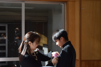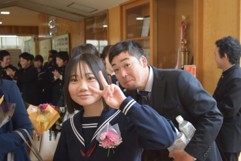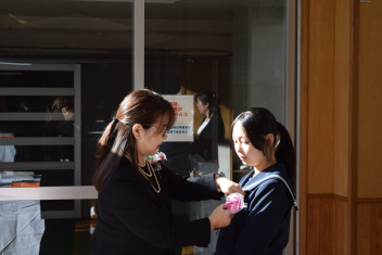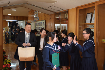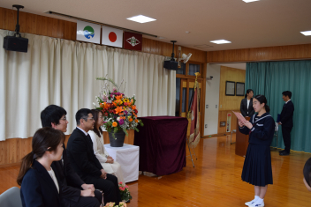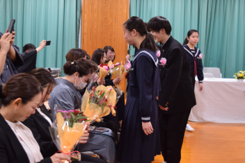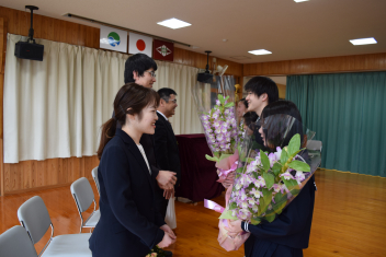 また、代表生徒から先生方1人1人の大切な思い出を振り返り、感謝の言葉を伝え、花束を渡しました。