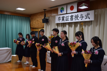 本年度は8名の卒業生を送り出しました。卒業生は名前を呼ばれると心のこもった返事をし、堂々とした立ち振る舞いで卒業証書を受け取りました。その姿はこれまでの成長や、支えてくださった方々への感謝の思いが伝わってくるようでとても感動的でしたmail