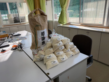 • 今年度も、旧磐田用水連合(寺谷用水土地改良区・磐田東用水土地改良区)様から、水源地の一つである水窪森林組合様へ、新米の「感謝米」が贈呈されました。水窪町森林組合様のご厚意により、水窪中学校へも一人1㎏ずついただきました。感謝の気持ちをもって、ありがたくいただきたいと思います。地域の方はじめ様々な方からのご厚意に深く感謝いたします。ありがとうございました。