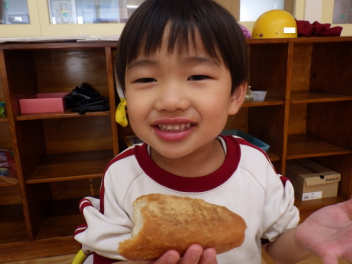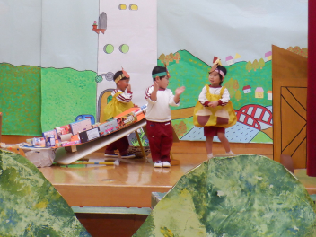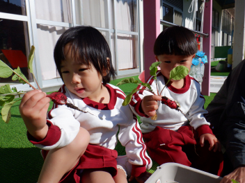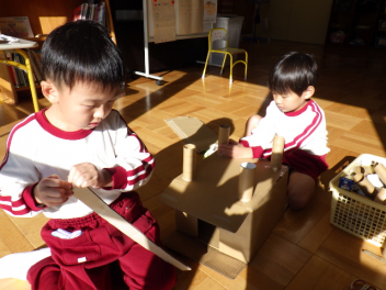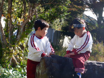 幼稚園で「いもほりごっこ」をしたんだよねsad