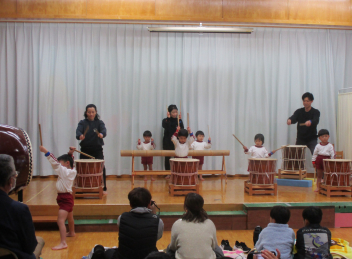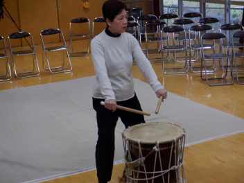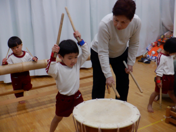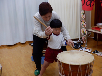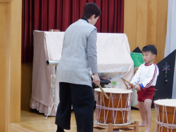 和太鼓の先生が来てくれ、日々の「和太鼓」の成果を見ていただきました