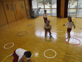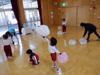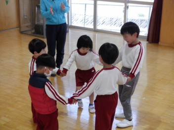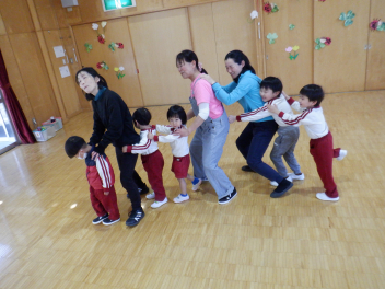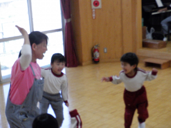 大勢で遊び方を伝え、合わせていきます・・