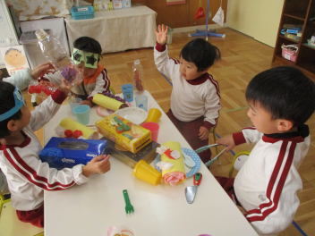 クリスマス会の経験を遊びにつなげていく子供たちlaugh